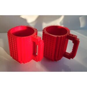Think Geek Red Build On Brick Mug Tea Coffee Cup BlockBrick Set of 2. Fun mug set. Heavy Duty. Great for kids or camping.