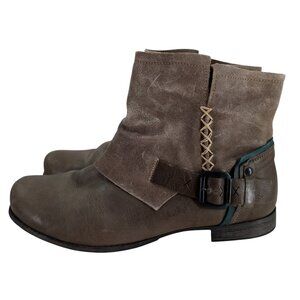 Think! Leather Suede Chelsea Ankle Boots Booties Size 41 US 10 Gray Buckle Punk