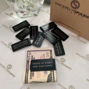 Durable brushed black stainless steel constructed metal with minimalist design and quote : "Remember When you Had None" on the front and the official Sincerely Opulence logo on the back. Brushed finish with modern look and smooth feel. Helps keep cash and credit cards together and neat.