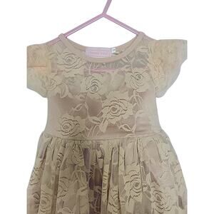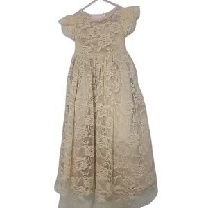 Think Pink Bows Toddler Size 3 Baby Doll Dress Long Cream/ Beige Lace NEW