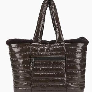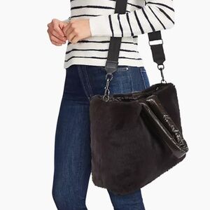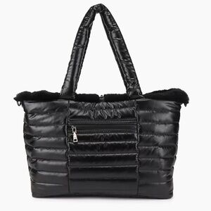 Think Rolyn Duplex Reversible Faux Fur Tote Travel Shoulder Work Gym Bag Black