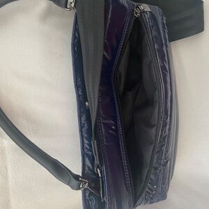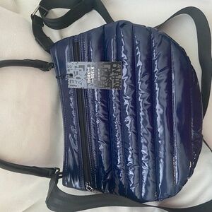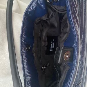 Get ready for the fall/winter season with this beautiful Think Royln Navy U Monterey Messenger Crossbody Bag. New with tags. Adjustable detachable crossbody strap with a short detachable strap in black. Inside you have a wall zip pocket, water bottle holder, wall pocket. Outside zip pocket & on other side a magnetic close snap pocket. Measures approximately 14"w x 11"h with a 21" strap drop; 3" front-to-back width. From a smoke-free/pet-free house.