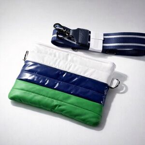 Package includes tote, pouch, web strap, and chain strap