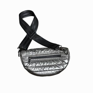 Think Royln Bum Bag Crossbody in Gunmetal Metallic | Quilted Belt Bag