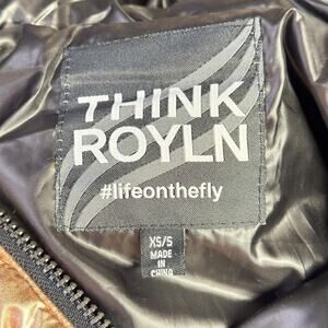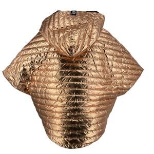 Think Royln Women's Lexington Hi Lo Puffer Poncho Jackets Sz S Hooded Packable Rose Gold Oversized Down Filled Boxy