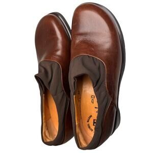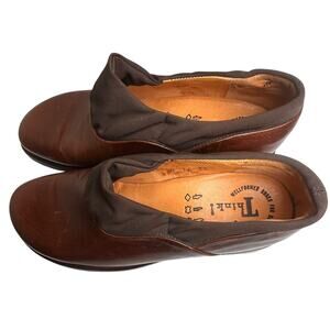 Think! Shoes Womens 6 Sz 36 Brown Leather Slip On Clogs Loafers Comfort Career