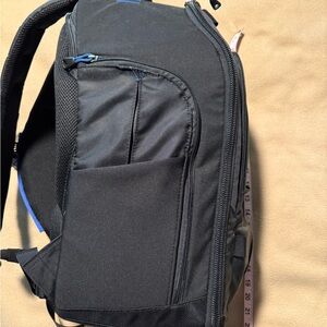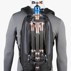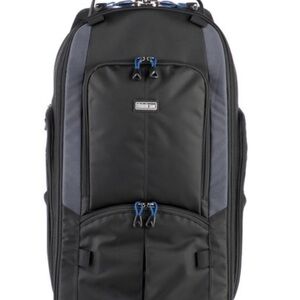 Take your photography gear on the road with the versatile, well made, black StreetWalker Backpack from Think Tank. Inside the spacious, padded, zippered main compartment are touch-fastening dividers for organizing a gripped pro DSLR with attached 70-200mm f/2.8 lens, seven additional lenses, a flash, and the included rain cover. Under the lid are clear-mesh zip pockets for accessories. The rear of the pack features a zippered laptop compartment for your up to 15" laptop and 13" tablet. On the front of the pack are an adjustable quick release strap and a tripod cup complemented by a tripod strap, for attaching a medium-sized tripod.