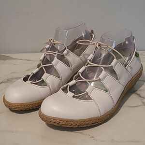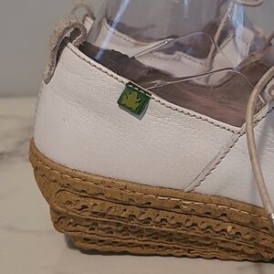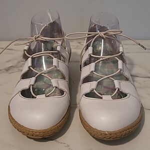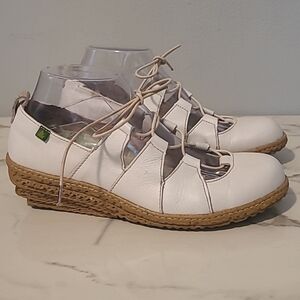 Think! Women's 8.5 White Leather Lace-up Casual Artsy Wedge Loafers Shoes Boho