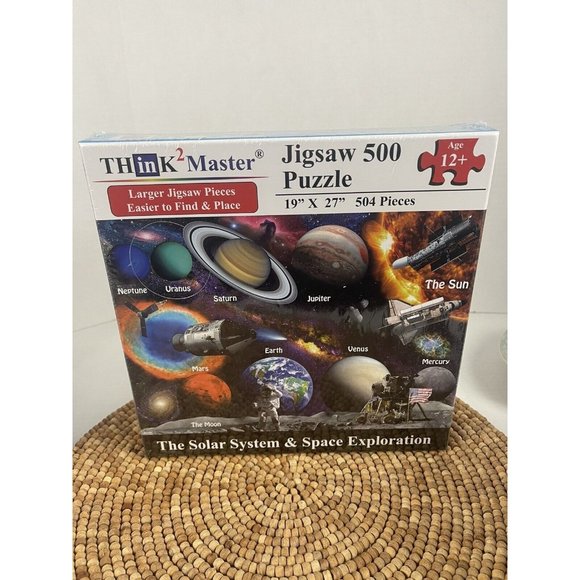 Brand New in Factory Sealed Plastic Wrap! THinK 2 Master Large Piece Jigsaw Puzzle 19 inches by 27 inches, 504 Pieces! This puzzle is awesome for kids! If you need a little help, you can look at the letter on back as a guide to what portion of the puzzle the piece fits in. Learn facts about space exploration!