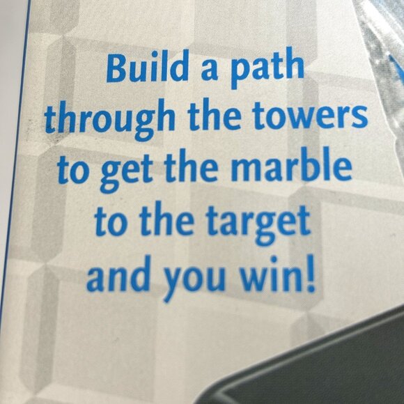 a game grid - 9x towers - 1x target piece- 3x marbles