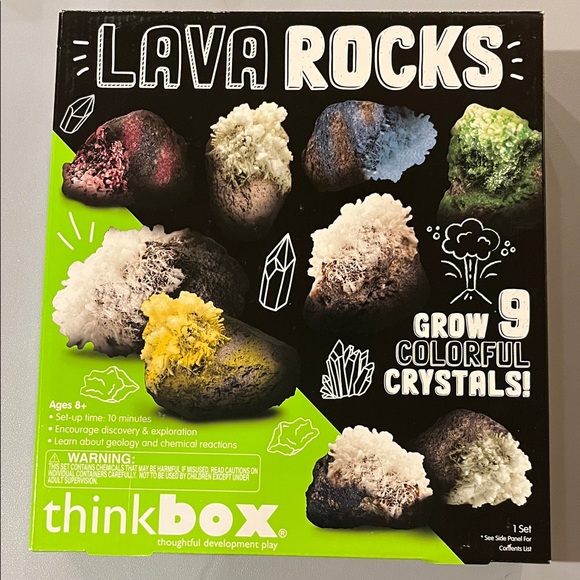 Grow colorful crystals with the Thinkbox Lava Rocks kit. Includes fun educational experiments for kids.
