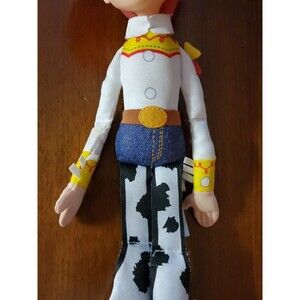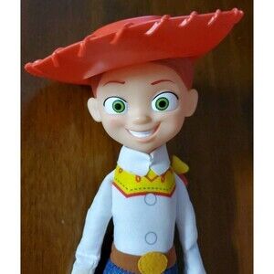 Thinkway Toys Disney Pixar Toy Story 15-inch doll of Jessie. The doll is a plush with plastic head and hat. Jessie the Yodeling Cowgirl is one of the main characters of the Disney Pixar Toy Story franchise, making her first appearance in Toy Story 2. She is a inspired by vintage pull-string rag-dolls of the 1950s.