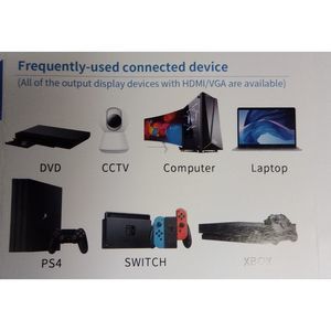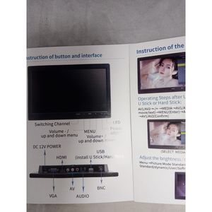 10.1” HD Monitor for Mini TV & Car Video Player & Computer Display TFT LCD Product Description 2-channel video inputs: Automatically switch to backup camera picture when car backup. And back to your DVD/VCD video when you finished car reverse.Easy to mount and pack: The stand is perfect allowing you to adjust the viewing angle and rotate the screen to meet all your needs. Portable to carry so that you can enjoy your favorite shows at home, on car or during travel. There are four holes on the back of the monitor, so that you can hang it on the wall as a TV. (screws not included). Notice: If you use this for video games, this AC adapter does not allow working too much long time. Do not turn off the power in an emergency, but turn off the monitor firstly. To protect the screen, it is best not to peel off the protective film. Because there is no influence on the use of the product.