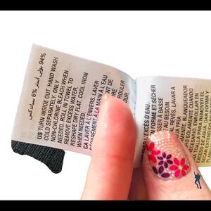 This 95% poly/5% spandex top. Very tummy slimming. The top is primarily black with a gun metal under tones. The center of the belly has a self tie/attached twist, it slim down any tummy you might have. NWT