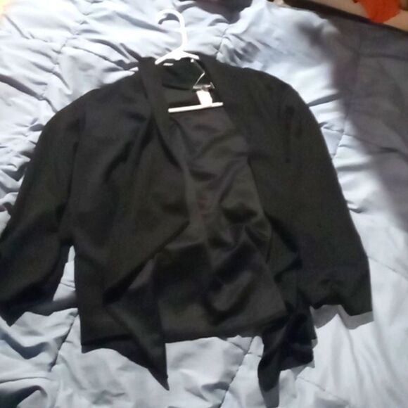 cute, flattering, flowy. what more could you ask for? tags still on. never worn. dress up or dress down. slight ruche on sleeves. 3/4 length sleeves. pairs well with a tank dress.