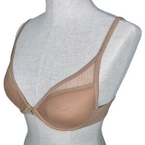ThirdLove 24/7 Classic Contour Plunge Bra sz 32B 1/2 * Uplift Tan Mesh Overlay