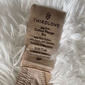 ThirdLove 24/7 Cotton Plunge Bra Tan Missing Underwire Womens Size 36F