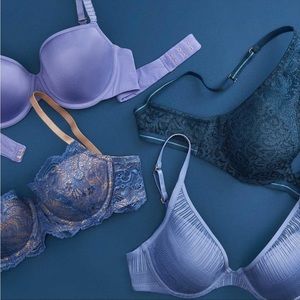 ThirdLove Everyday Lace Uplift Plunge Bra in Tempest Blue Push Up 32B 1/2