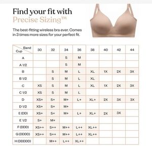 • Precise Sizing™ uses the idea of lettered sizing with scaled cup sizes for a better, more comfortable fit.