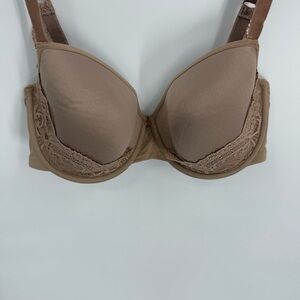 ThirdLove Lace Detail Bra Size 34F Tan Underwire T-shirt 24/7 Back Closure