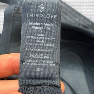 The ThirdLove Women's Modern Mesh Plunge Bra in 30F is a stylish and supportive underwired bra in a unique dark teal color with lace accents. The bra features a solid pattern with a hook & eye closure and adjustable straps, making it comfortable and secure. The mesh fabric adds a touch of breathability, while the plunge style offers a flattering neckline. Perfect for everyday wear, this bra combines classic design with modern features to provide both style and support for women with a size F cup.