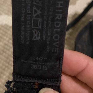 ThirdLove bra size 36B in the tag it says size 36B and a half. The color is black lace in good preowned condition normal wear and tear. See pictures for more details overall in good shape.