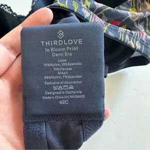 Thirdlove Bra 42C Blue Demi Bra In Bloom Print Underwire Back Close