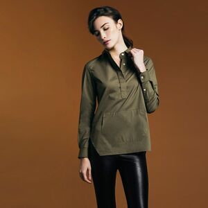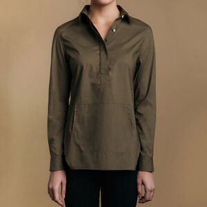 The Trapezoid Pullover combines details of our favorite tops: a polo, a classic shirt, and a hoodie. It has a relaxed fit with a longer back which makes it a perfect match for leggings and skinny jeans. The addition of the hoodie pocket adds an extra touch of style and comfort. It'll go perfectly with your millennial pink sneakers or any accessory you choose.