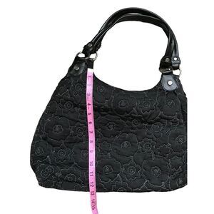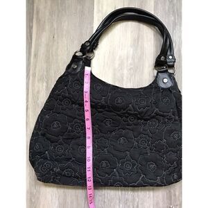 Thirty One 31 Quilted Black Floral Triple Compartment Large Satchel Bag Purse