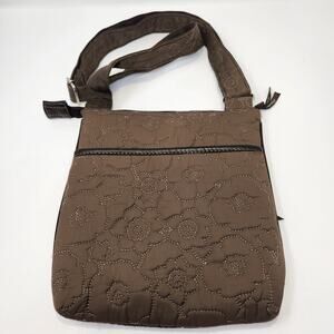 Thirty One Brown Quilted Poppy Floral Crossbody Shoulder Bag Travel Pockets