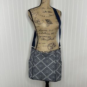 Thirty One Casual Carry All Navy Blue Diamond Weave Shoulder Bag Pockets