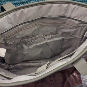 Perfect soft sided work, diaper or travel bag. Zip top closure and multiple pockets and an inside laptop sleeve.