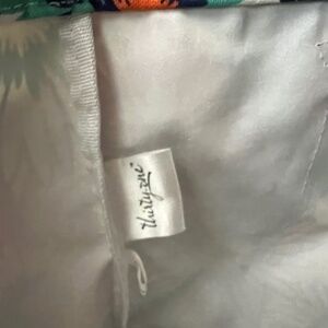 Features: Two exterior side flat pockets and inside the bag has a slip pocket and a zipper pocket as well as a tie over the top & a key holder