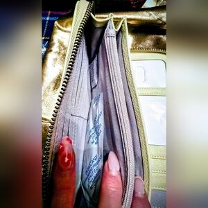 The product is a Thirty One Gifts All About the Benjamins® wallet with 12 credit card slots, inside zip pocket, and zip closure. It features a stylish yet practical design. New