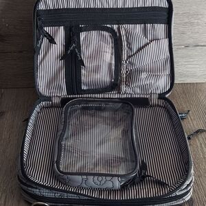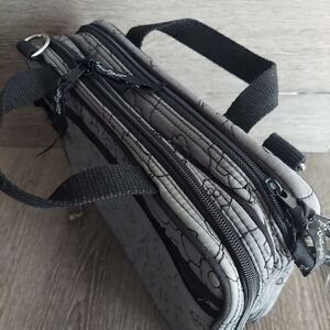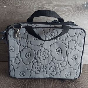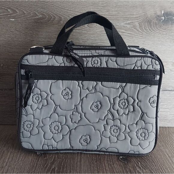 Thirty One Gray Quilted Poppy Double Zip Cosmetic Bag Organizer