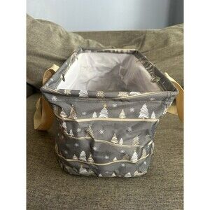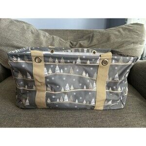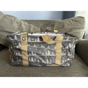 Thirty One Medium Utility Tote in Snowy Slopes Gray Tan Christmas Trees