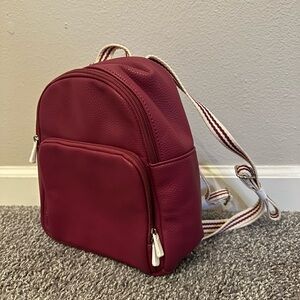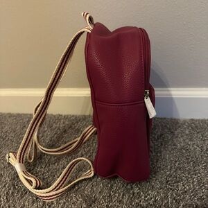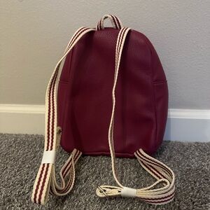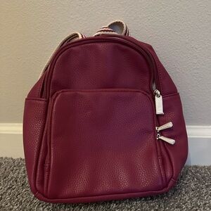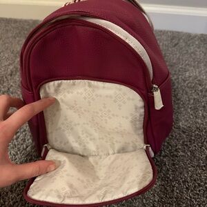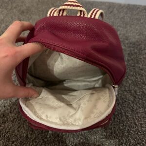 This backpack has two exterior zipper pockets and one interior zipper pocket. In addition, this backpack has adjustable patterned cotton backpack straps and a locker loop.