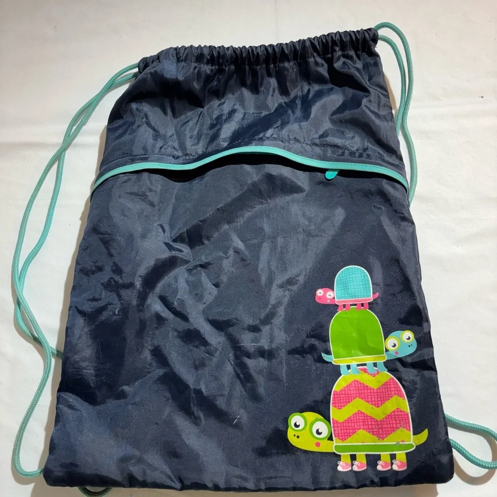 Thirty One Navy Drawstring Backpack with Colorful Turtle Stack