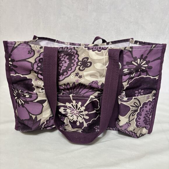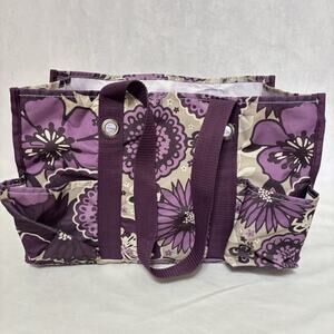 Thirty One Organizing Utility Tote 15 x 10 x 6 Pockets Plum Awesome Blossom
