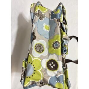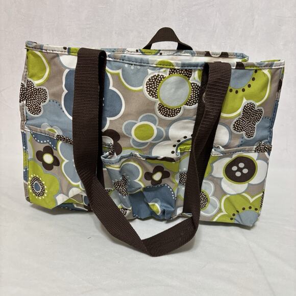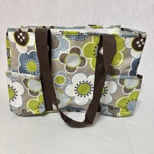 Thirty One Organizing Utility Tote Green Brown Floral 15 x 10 x 6 Pockets A