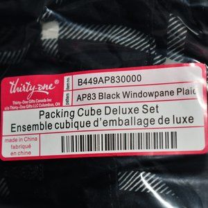 Thirty One Packing Cube Deluxe Set in Black Windowpane Plaid Set of 5 NWT
