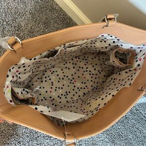 The outside of the bag is Tan Metallic Cork and the inside of the bag is the pattern Runaway Mini Dot.
