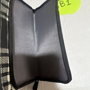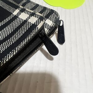Thirty One Womens Wallet Black Gray White Plaid Zipper Spacious Rectangular