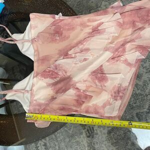 Thirty Thirty Asymmetrical Ruffle Mesh Cami Top Fairy Blouse Pink White Size Small