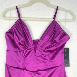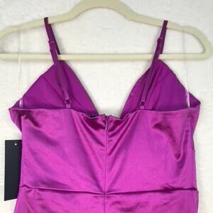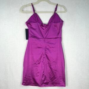 Thirty Thirty Dress Womens Small Purple Satin Mini Deep Plunge V Notch Pleated Short Party Silky Sexy
