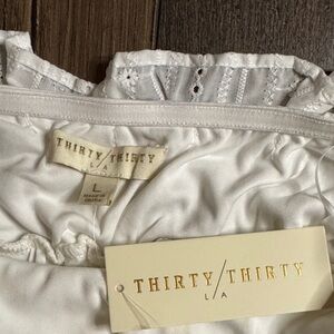 Thirty Thirty Elegant White Eyelet Ruffle Strapless Crop Top Size L