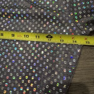 Gorgeous holographic mini dress from Thirty/Thirty LA. Features a stunning multicolor shimmer effect, flared bell sleeves, and an adjustable open back tie detail. Perfect for holiday parties, New Years Eve, night out, clubwear & special events.