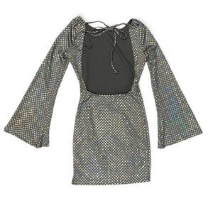 Thirty Thirty LA Party Dress XS Silver Sequin Backless Bell Sleeve Mini Disco Open back Sparkle Party