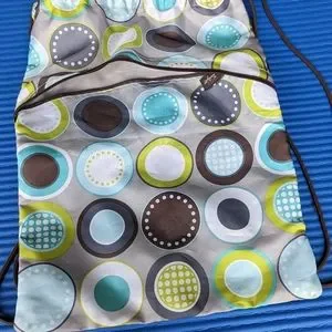Nice pull string bag by Thirty One. Has a zipper on front for easy access. No rips, holes, or stains.
