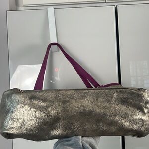 This elegant purple tote bag is perfect for any occasion. Its stylish design and vibrant color make it a must-have accessory. Reversible. In good condition. See pics and video. Vegan leather. Silver accent.